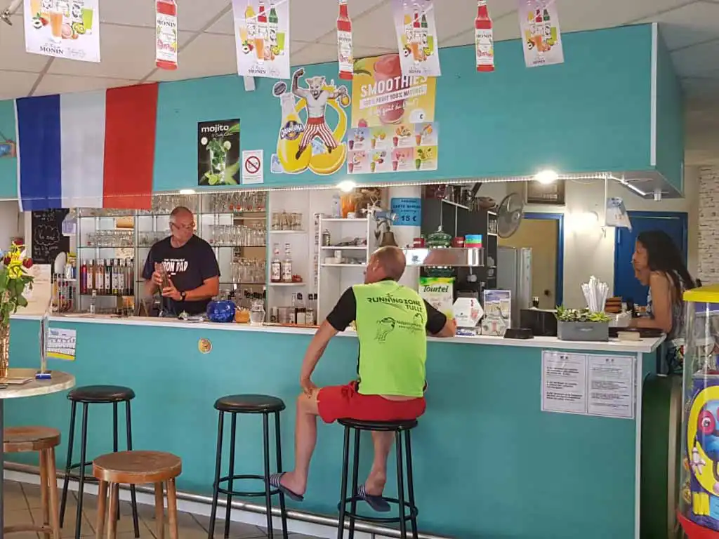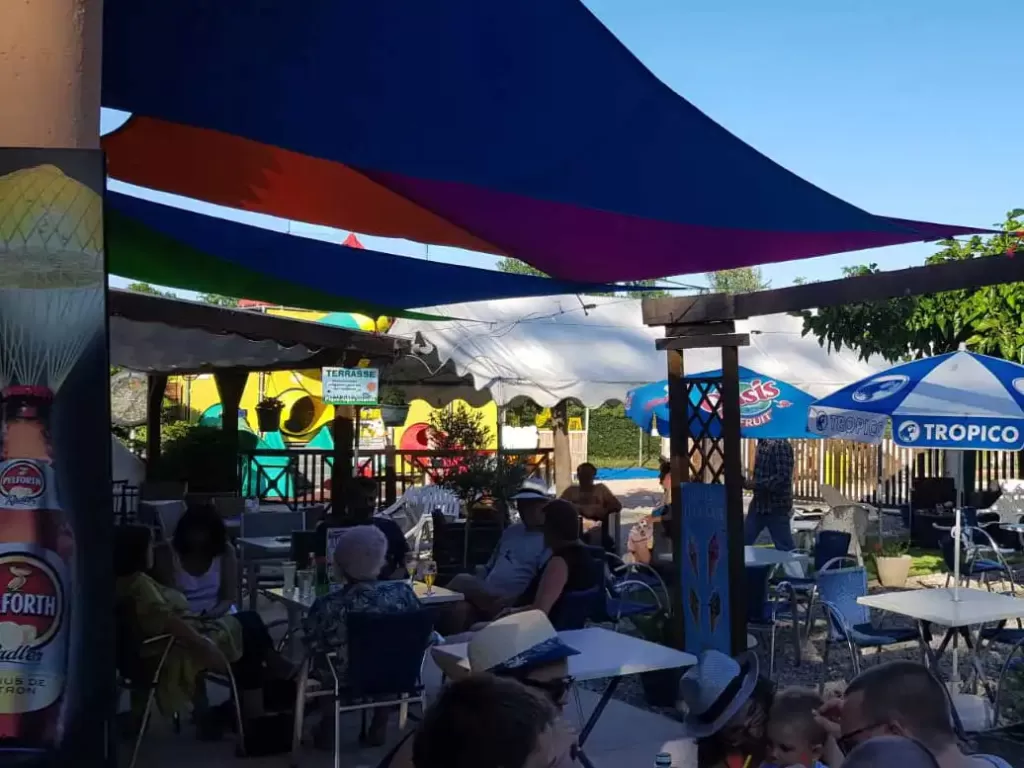 Le bar restaurant et sa grande terrasse en bordure de piscine vous propose : glaces, boissons fraîches, cocktails etc…encas et repas à consommer ou à emporter, dépôt de pain en haute saison et pains de glace.