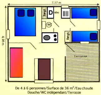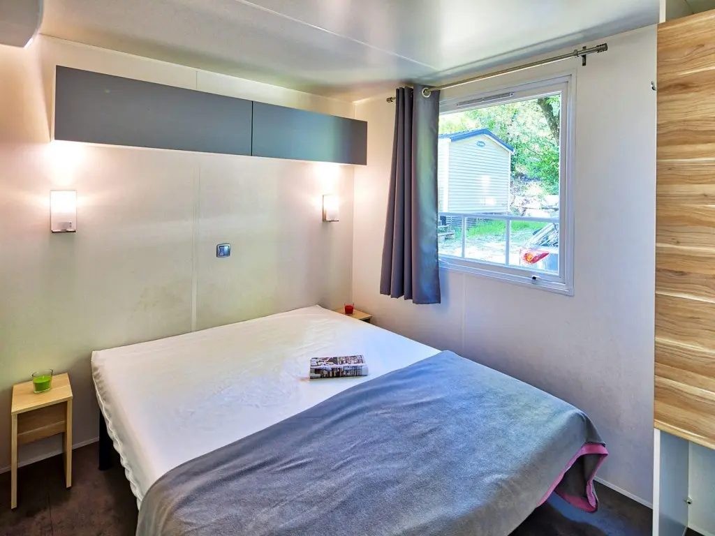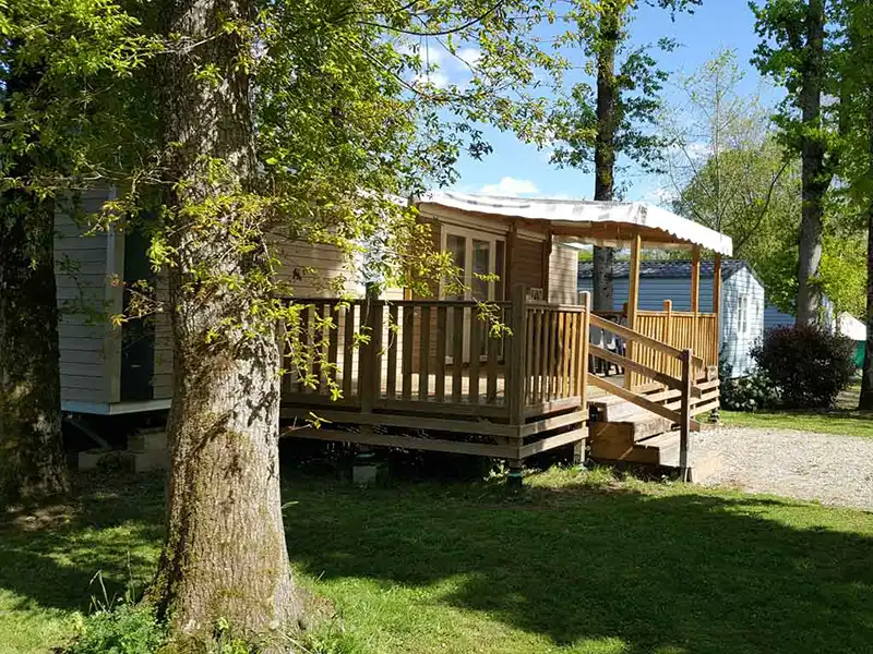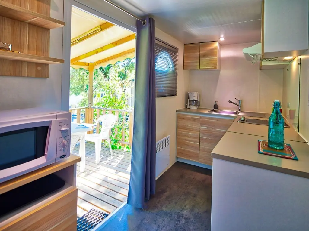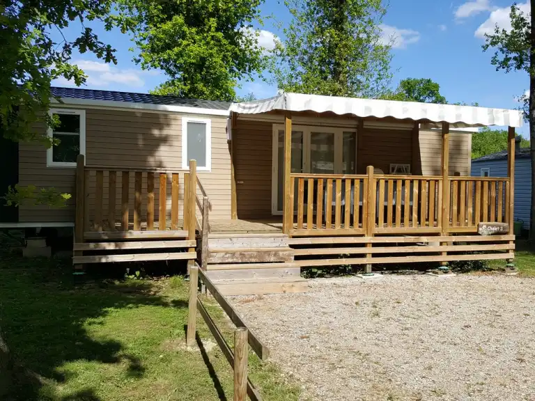 Mobilhome tout confort avec une jolie terrasse semi-couverte ideal pour 3 personnes.
